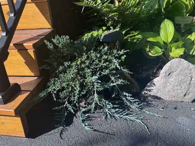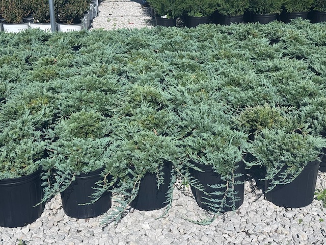 The Blue Rug Juniper has silver blue green foliage.