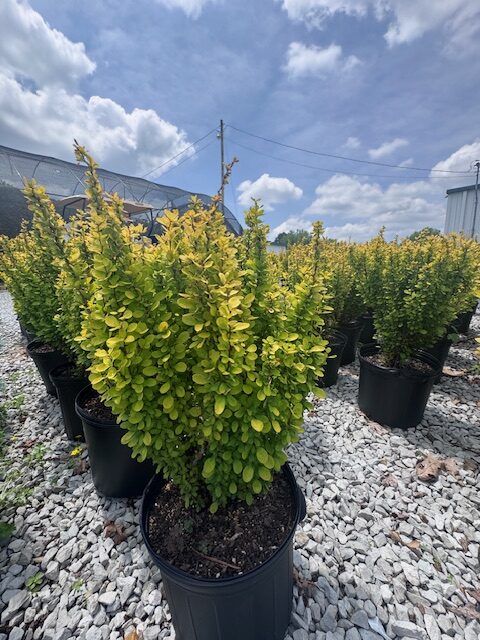 The Golden Rocket Barberry has dramatic color from spring to fall. It has a narrow, upright habit and showy bright yellow foliage that creates excellent color contrast.